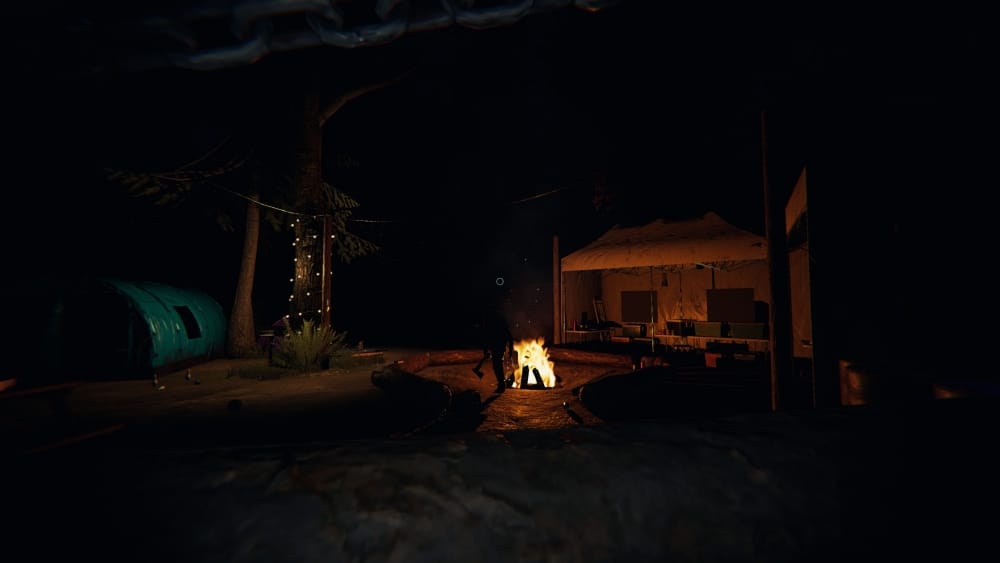 Apocalypse, najnowsza aktualizacja do Phasmophobii – screen z gry, mapa Camp Woodwind, ognisko, kemping, duch, polowanie, światełka