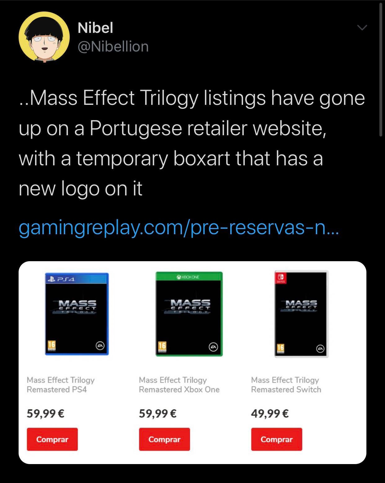 Ostatnio wyszło także na jaw, że Mass Effect Trilogy było dostępne przez pewien czas w portugalskim sklepie internetowym GamingReplay. Okazało się to jednak pomyłką i sprzedawcy usunęli możliwość zakupu. Natomiast dzięki jednemu z użytkowników Twittera wiemy, jak wyglądało tymczasowe pudełko i ile mniej więcej może kosztować nowe wydanie trylogii.