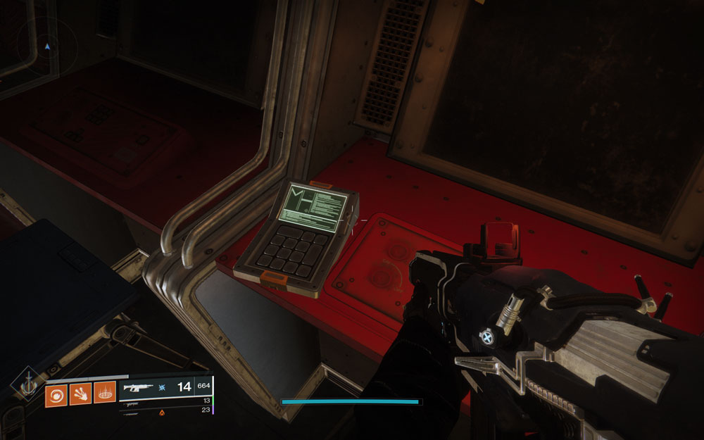 Aby uzyskać szyfr, należy wylądować przed główną siedzibą Przyszłoświata Braytech (Futurescape Braytech) i wejść do środka. Na prawo rezyduje Ana Bray, zaś gracz powinien udać się na lewo, w stronę Laboratorium Rasputin (Warmind: Rasputin). Po dotarciu do lokacji Nurt Aurory (Aurora Breach) i po przejściu przez tunel zaraz po prawej stronie zobaczy otwarty malutki pokój.