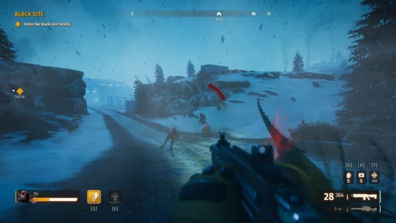Trzy najważniejsze rzeczy w strzelankach: amunicja, apteczki, no i bronie. Na początku misji mamy broń z pełnym magazynkiem oraz trzy apteczki. Możemy do tego pobrać jeszcze dwie na punkcie zrzutu (pięć to maksymalna liczba, którą można mieć przy sobie). Podczas rozgrywki możemy przywołać zrzut amunicji, jeśli znajdujemy się na odkrytym terenie. Takie zasilenie zawiera trzy paczki, które niekoniecznie mogą wystarczyć, aczkolwiek nic nie stoi na przeszkodzie, żeby każdy gracz przywołał zrzut w tym samym czasie. Co więcej, przywołania amunicji NIE są limitowane. Naboje i apteczki można też znaleźć w zabudowaniach, jednak tam jest ich ograniczona liczba. Gracz ma do dyspozycji łącznie siedem typów broni: pistolet, karabin maszynowy, minigun, karabin automatyczny, wyrzutnię granatów, strzelbę myśliwską i karabin zwiadowczy.