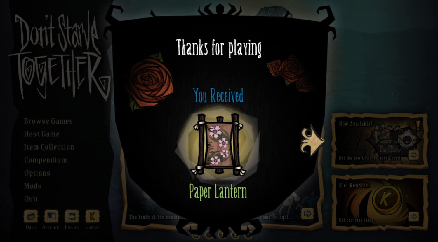 Don't Starve Together koniec Return of Them – skin do papierowej latarni, za zalogowanie się