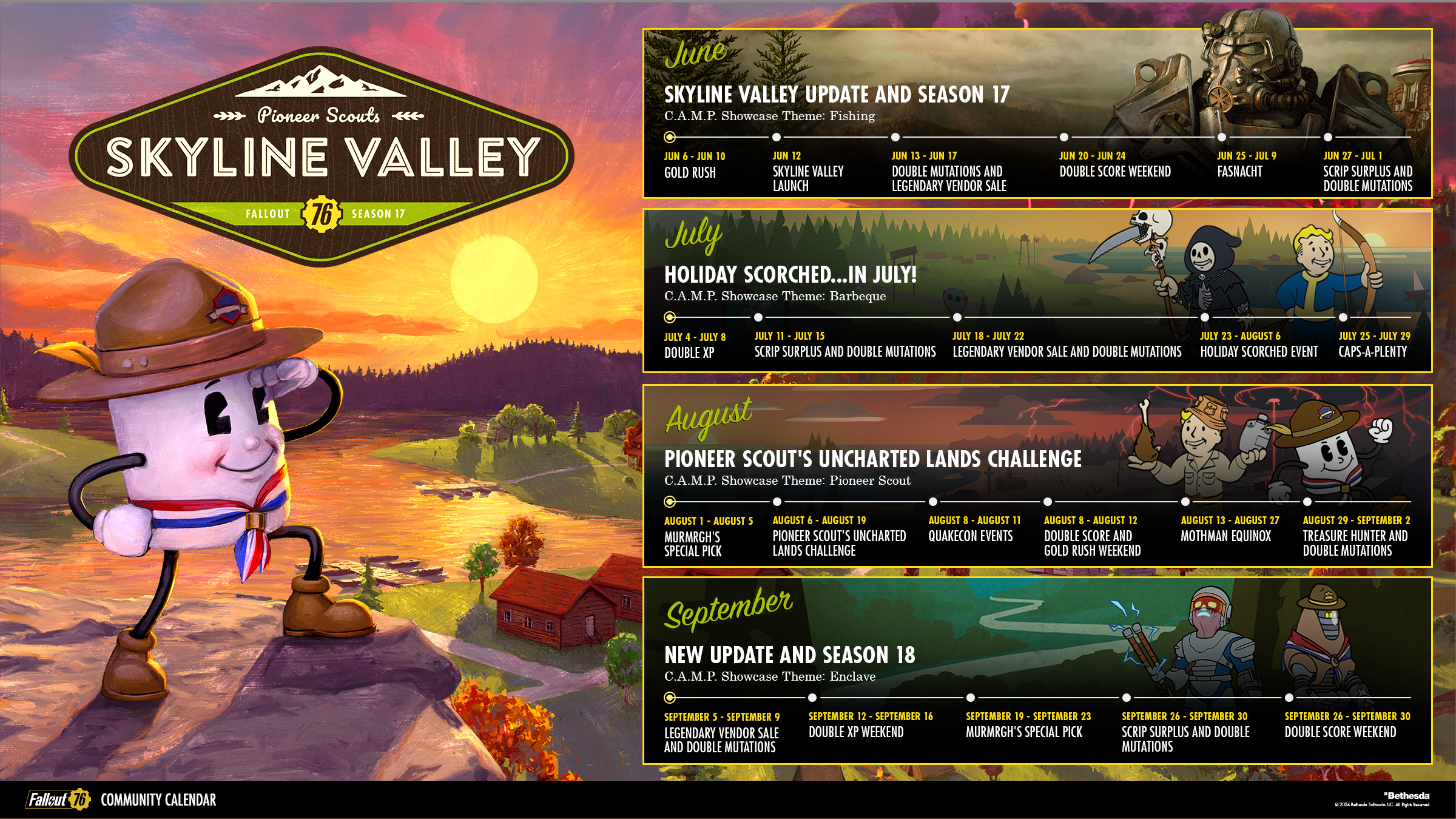 Aktualizacja Fallout 76: Skyline Valley weszła do gry wraz ze startem 17. sezonu. Według informacji na oficjalnej stronie serii Fallout odnoście samej aktualizacji: