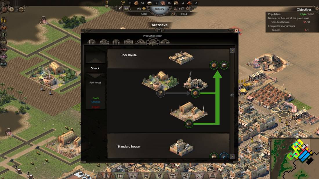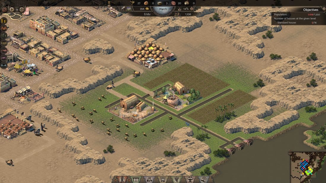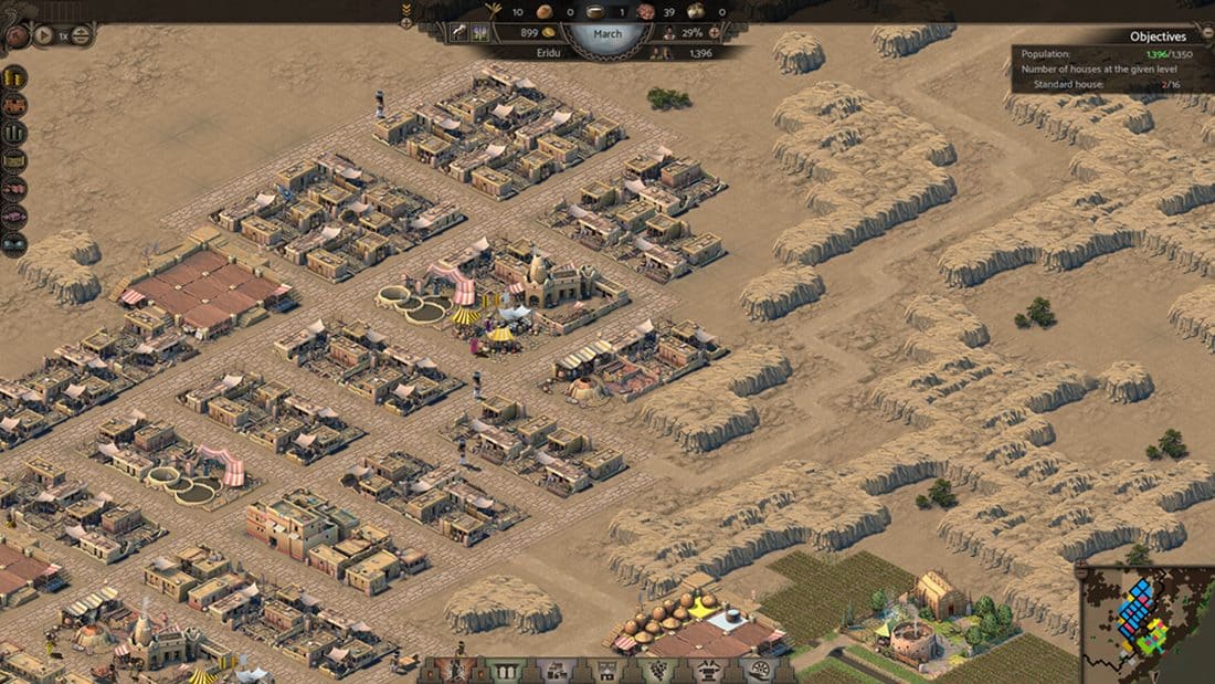 Chleb, mleko, woda czy ceramika to zaledwie wierzchołek góry lodowej potrzeb Mezopotamczyków. Nebuchadnezzar wprowadza bowiem w kampanii fabularnej podział społeczeństwa na klasę niższą i wyższą. Ta druga ma nieco wyższe wymagania zarówno co do otrzymywanych towarów i podejmowanych zawodów, jak i środowiska, w którym żyje. Jednakże obie warstwy społeczne mogą dać graczowi nieźle popalić, gdy przychodzi do rozbudowy domostw. Ponownie odwołam się do Faraona, w którym stawiane chatki mogły rozrastać się do lepszych jakościowo i wielkościowo domów. Podobnie jest tutaj. Dzięki dostarczaniu potrzebnych towarów z targowisk mieszkania Mezopotamczyków mogą być rozbudowane, oferując tym samym miejsce dla chętnych imigrantów. Jednakże wraz z przerwą w dostawach i dłuższym braku wody, chleba, mleka czy, o zgrozo, ceramiki (wychodzi na to, że w starożytności wyjątkowo łatwo się tłukła) budynki te mogą zaliczyć powrót do swojego pierwotnego stanu.