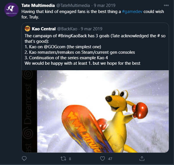 Warto tutaj przypomnieć zeszłoroczną akcję #BringKaoBack, na którą twórcy zareagowali w taki sposób na Twitterze: