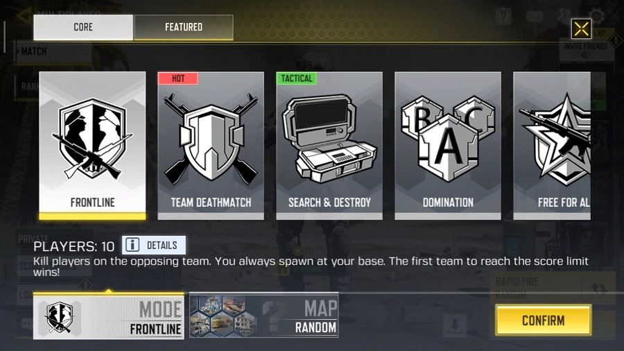 Wchodząc po raz pierwszy do gry, dostajemy możliwość zalogowania się jako gość, poprzez Facebooka bądź nawet przez swoje konto Activision. Poruszając się po menu,działamy intuicyjnie – kto miał styczność z FPS-ami, ten poczuje się jak w domu. Zanim zaczniemy rozgrywkę, mamy do wyboru tryb gry oraz mapy, przeniesione z komputerowych i konsolowych wersji Call of Duty. Z klasycznych trybów wyróżniamy Team Deathmatch, Dominationi Search & Destroy. Co jakiś czas twórcy dodają wydarzenia z trybami specjalnymi, w których możemy pobawić się w Gun Game albo sprawdzić swoje umiejętności w Sniper bądź Knife Game. Gra oferuje szeroki wachlarz broni, które uzyskujemy poprzez zdobywanie nowych poziomów, wyższych rang oraz otwieranie skrzynek.