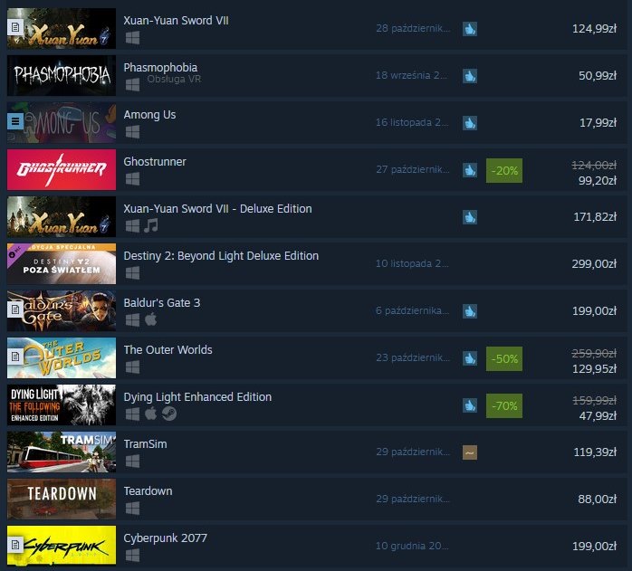 Na dzień 29 października 2020 roku zajmuje on 4 miejsce w rankingu, wyprzedzając tym samym Baldur’s Gate 3 oraz… Cyberpunka 2077, o którym pisałyśmy tutaj.