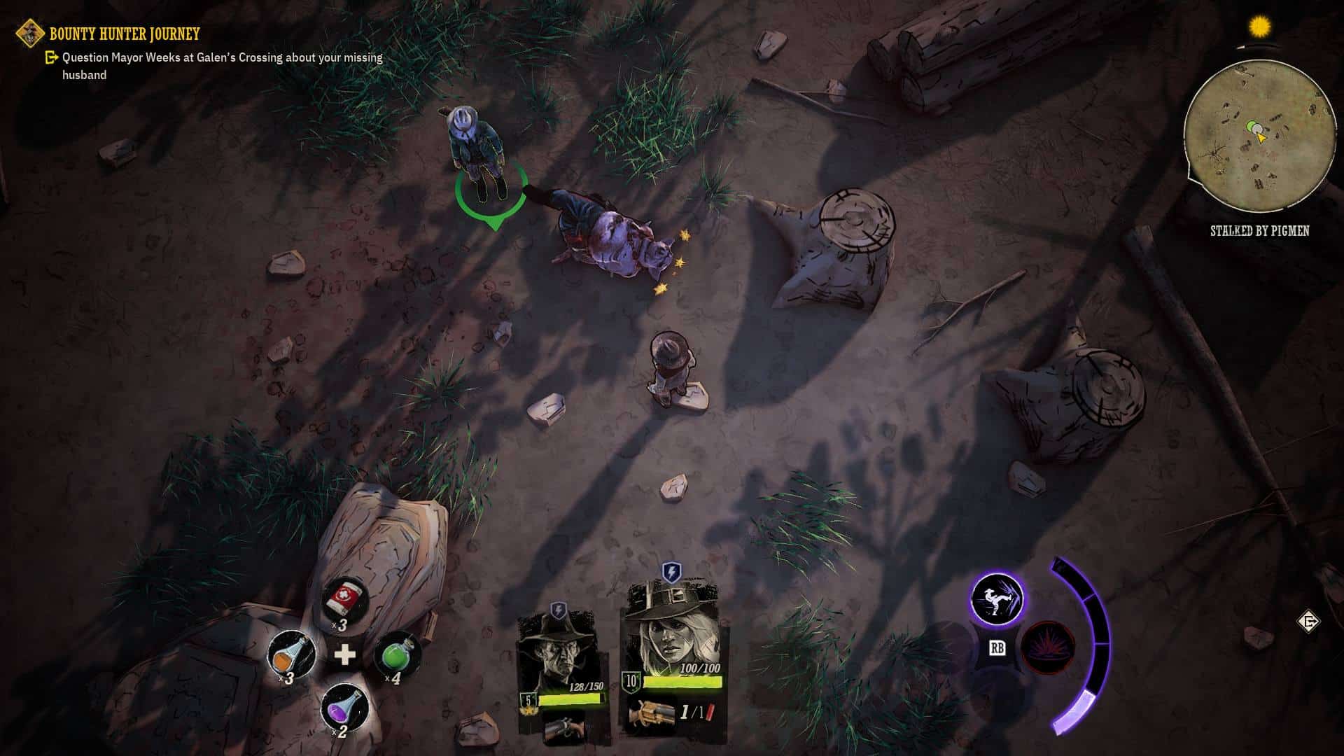 Gra dopuszcza skradanie się po krzaczorach, chowanie za przesłonami i oszałamianie wrogów. Nie powiem, momentami nawet mnie, wielbicielce toporów i wikingów, szło to całkiem nieźle. Oczywiście wcześniej czy później puszczały mi nerwy i kończyłam sprawę maczetą, ale starałam się także oszczędzać niektórych wrogów. Tylko gra nie do końca na to pozwala. Jeżeli nie pozbędziemy się wszystkich przeciwników, istnieje duża szansa, że ktoś z szajki denata dowie się o naszych grzeszkach i rozpocznie vendettę! Możecie mi wierzyć, że niefajnie jest tłuc się po drodze z rozżalonymi przeciwnikami, kiedy bohater wraca wycieńczony z misji. Zazwyczaj nie ma się już wtedy bandaży, plecak jest wypełniony po brzegi łupami, a tutaj znowu trzeba kogoś siec i zbierać loot. Podobnie sprawa ma się z niedobitymi przeklętymi istotami. Ach, te problemy Dziwnego Zachodu!