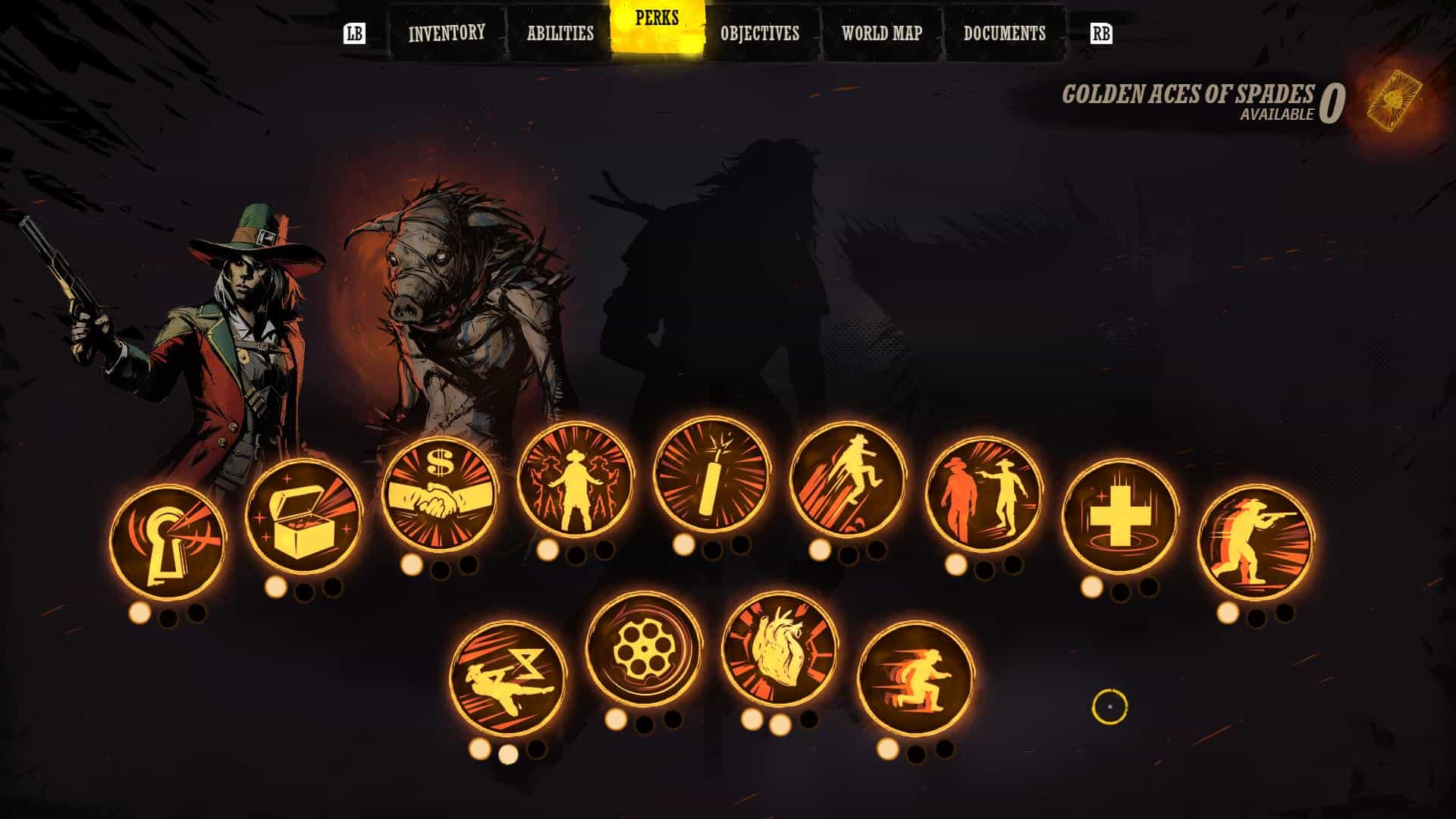 Każda z postaci, której scenariusz aktualnie rozgrywacie, posiada umiejętności właściwe tylko dla niej. Odblokowuje się je stopniowo po znalezieniu odpowiednich magicznych korzeni (a te są rozsiane po całej mapie, nawet w najdziwniejszych miejscach). Dodatkowo postaci mogą rozwijać cechy „globalne”, które będą dostępne także dla bohaterów w kolejnych scenariuszach. Tutaj warto wypatrywać kart Złotych Asów Pik, na które także możemy natknąć się w najmniej spodziewanych momentach. Same drzewka umiejętności nie są szczególnie rozbudowane, ale w toku rozgrywki przekonałam się, że nie ma sensu inwestować we wszystkie. Przykładowo – szczególnie przypadły mi do gustu bronie białe, tym samym nie skupiałam się już na rozwoju umiejętności strzeleckich. Jak mówiłam: Wasz styl, Wasza zabawa!