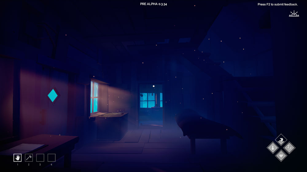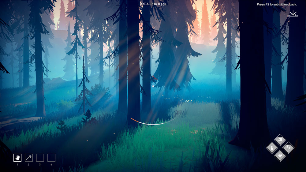 Grę rozpoczynamy w małej drewnianej chatce pośrodku lasu. Zwięzły samouczek informuje nas, że w przyszłości może być ona rozszerzona o kolejne pomieszczenia, jeśli uda nam się zebrać potrzebne surowce. Eksploracja rozpoczyna się wraz z postawieniem kroku poza nasz mały azyl.