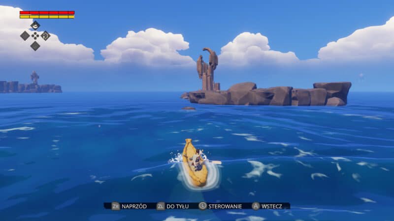 Niestety pomimo dobrej animacji żeglowania, ciągłe trzymanie przycisku odpowiedzialnego za ruch łodzi do przodu jest uciążliwe. Teoretycznie można wytworzyć żagiel, ale ten, zamiast pomagać, dodatkowo utrudnia całą mechanikę, znosząc łódź na boki, więc gracz i tak jest zmuszony do wciskania klawiszy, żeby móc płynąć tam, gdzie chce.